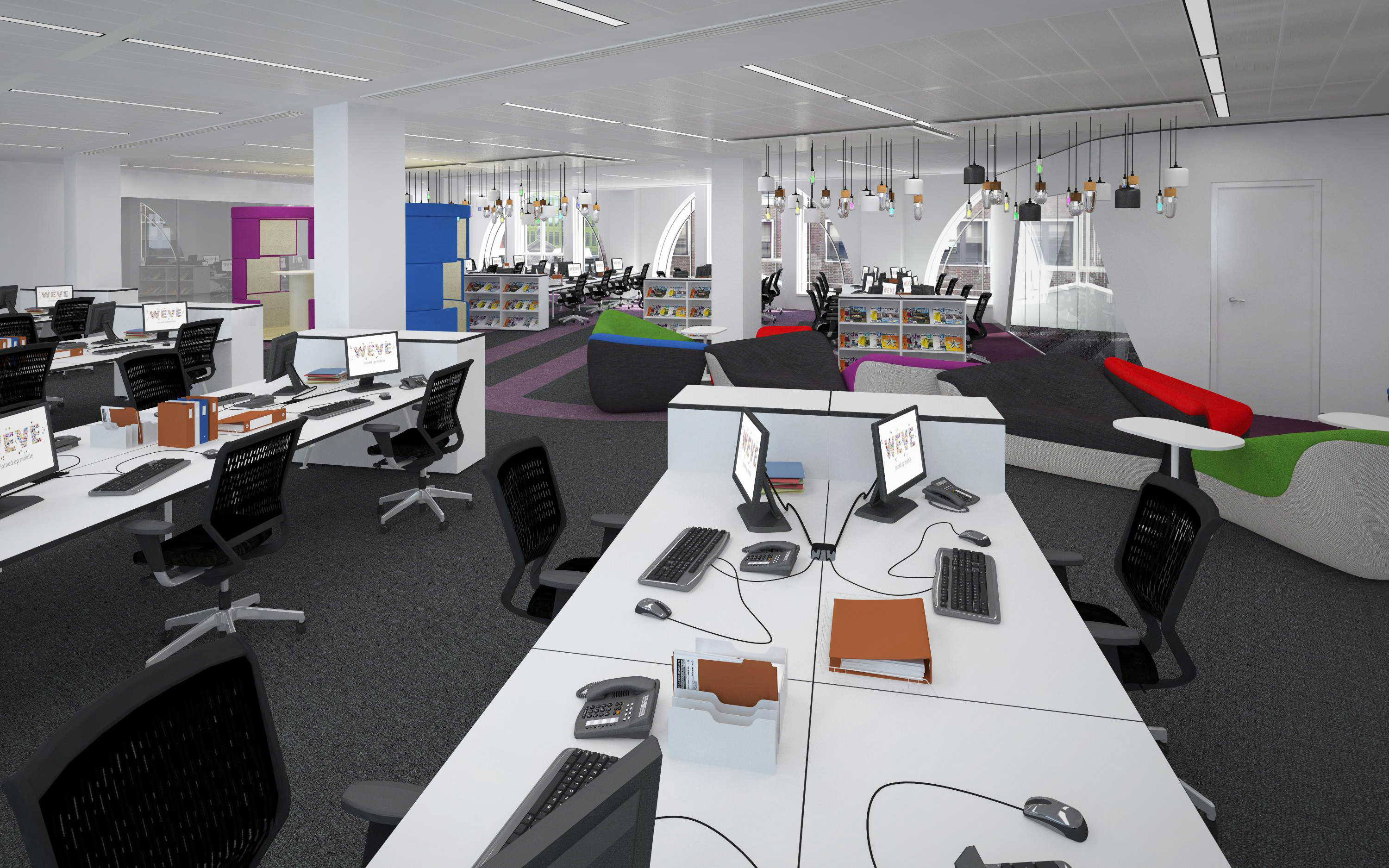 The designers of this office space on New Oxford Street for a mobile marketing company, Weve, asked D3V to create CGIs to help gain sign-off for their design by their client.